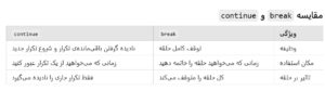 دستورات break و continue ابزارهای قدرتمندی هستند که برای کنترل جریان حلقه‌ها استفاده می‌شوند. این دستورات به شما این امکان را می‌دهند که روند اجرای حلقه‌ها را تغییر دهید و تصمیمات پیچیده‌تری در حین اجرای حلقه‌ها بگیرید.